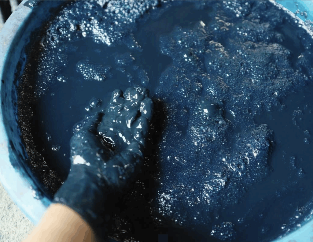工房の裏手には泥染めに使われる泥田が広がっており、実際に泥に触れる体験もできました。泥は非常に鉄分が多く、肌に触れるとひんやりとして独特の感触がありました。職人さんからは、この泥が「泥染めの命」と教わりました。